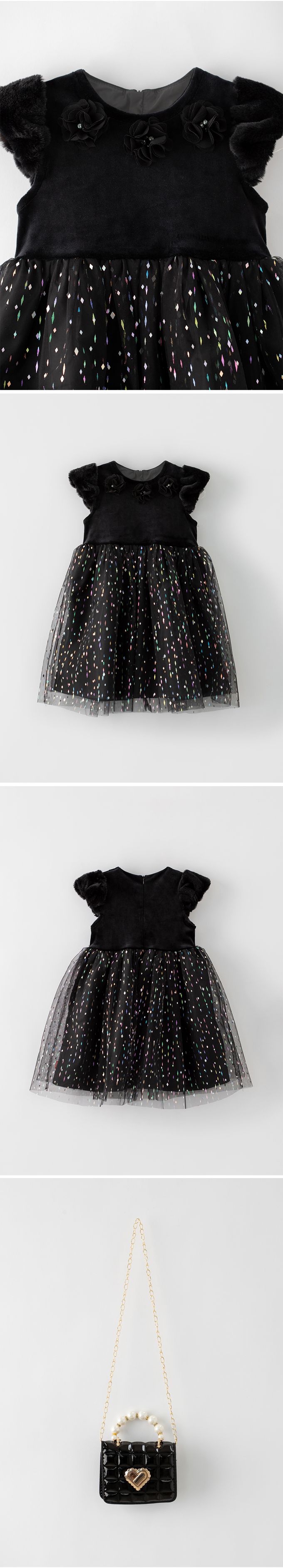 • 品名:(附包包)天鵝絨背心拼接亮片網紗洋裝