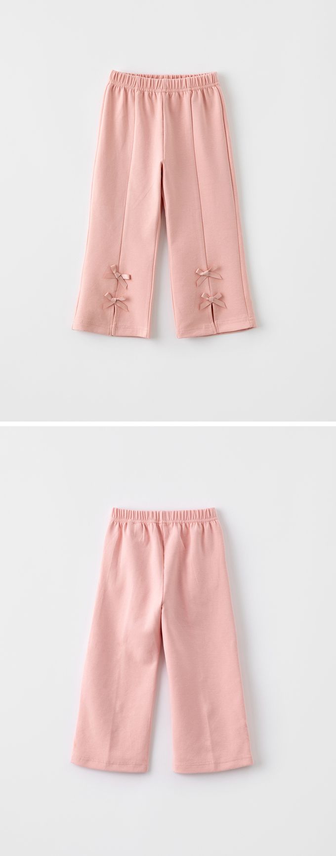 韓國 OZKIZ - 鬆緊腰蝴蝶結裝飾開衩小喇叭褲-粉