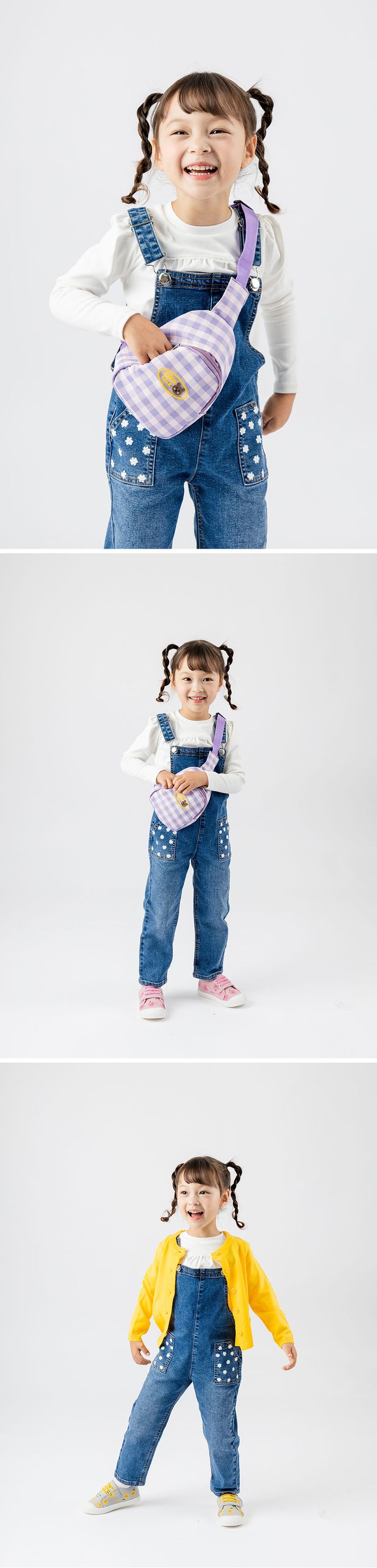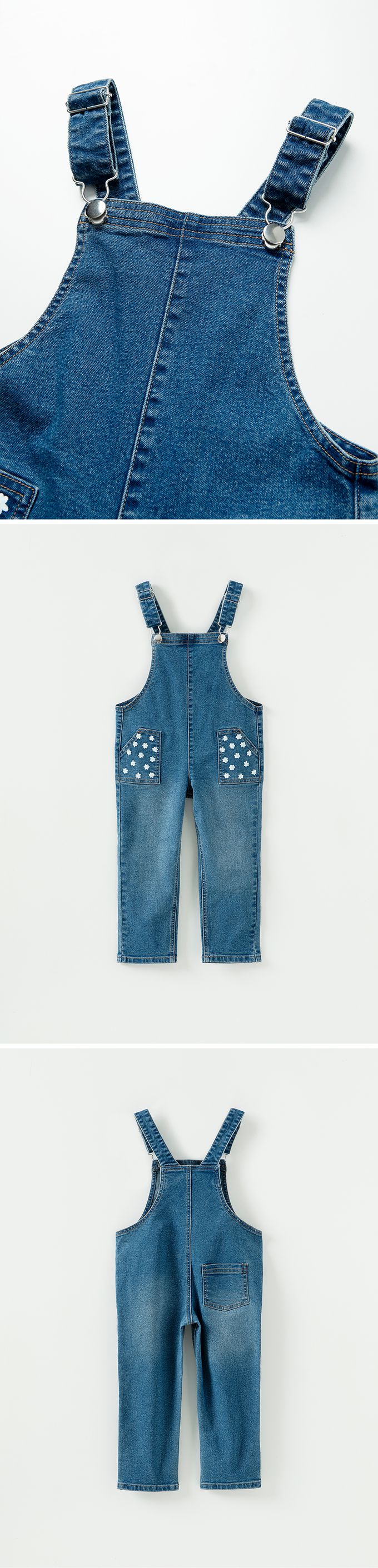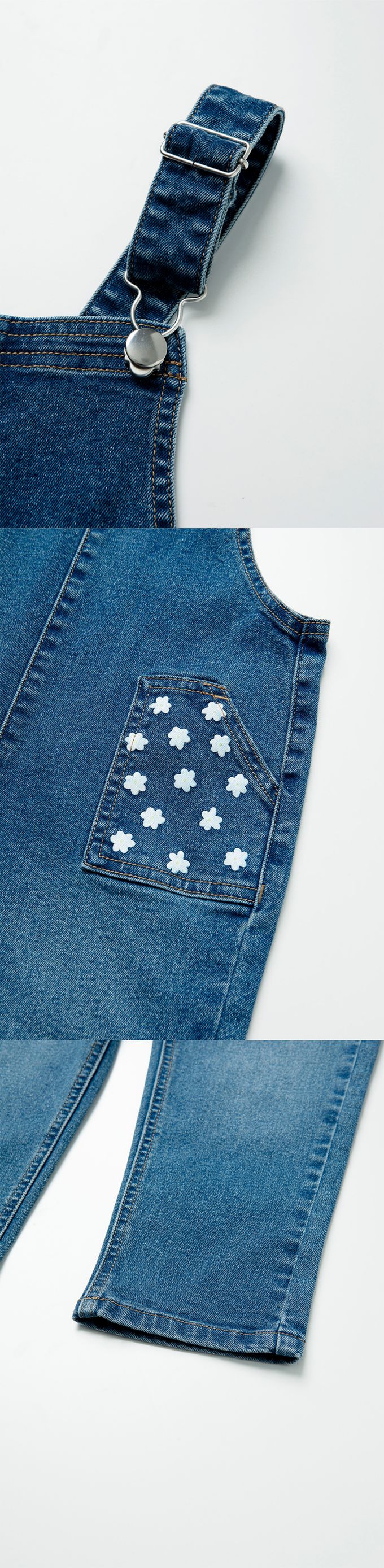 • 品名:口袋小花點綴彈性丹寧吊帶褲