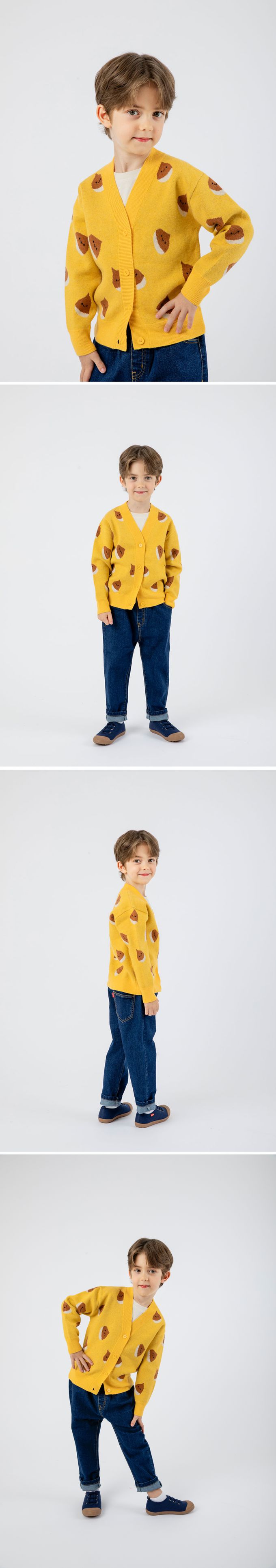 韓國 OZKIZ - 好吃栗子印針織V領外套-芥黃