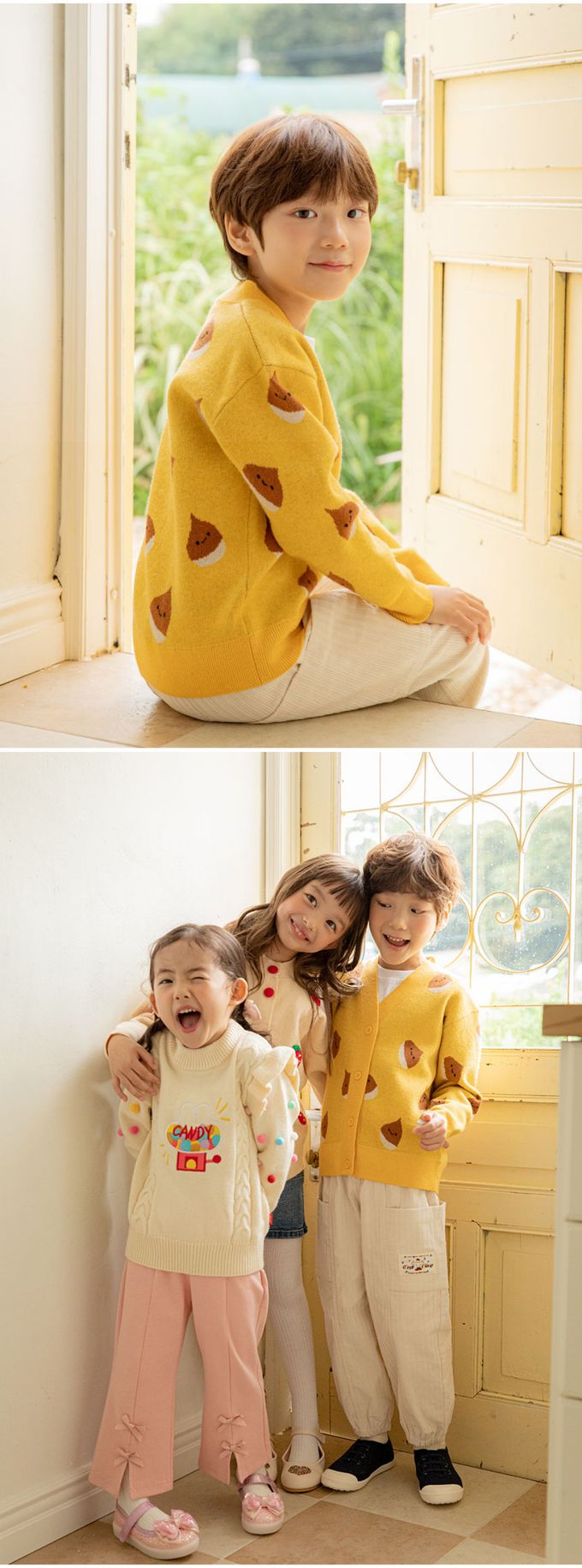 韓國 OZKIZ - 好吃栗子印針織V領外套