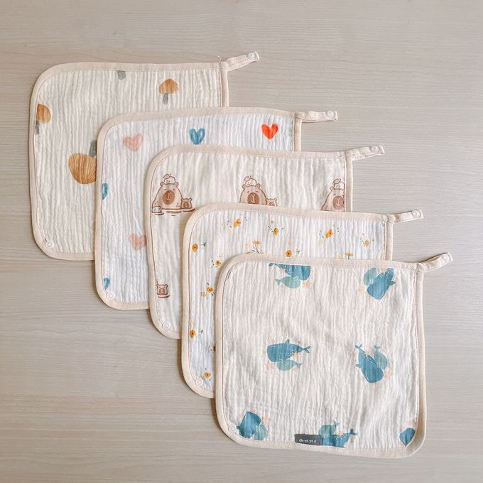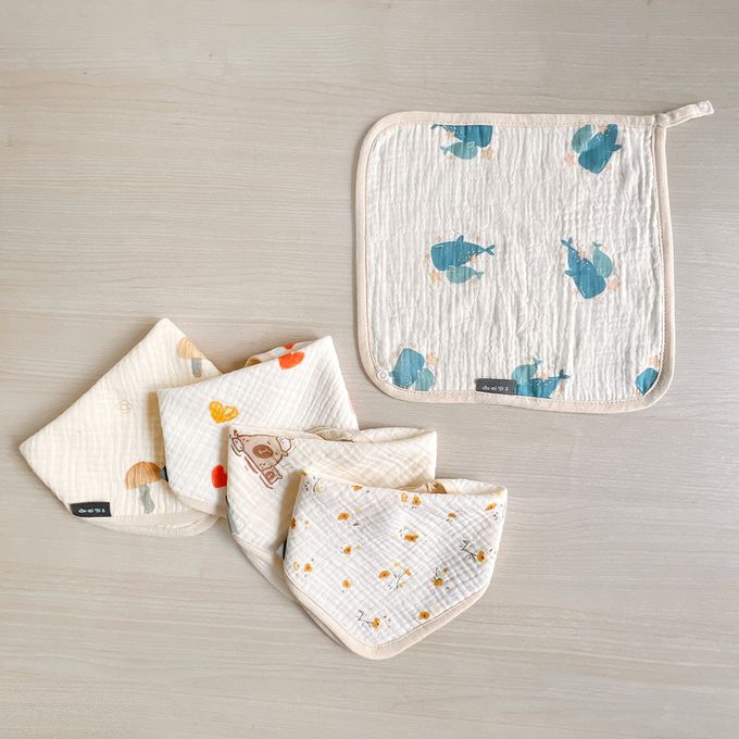 Chi-mi啾米 - 四層紗兩用圍兜5件組 (F碼25X25CM)