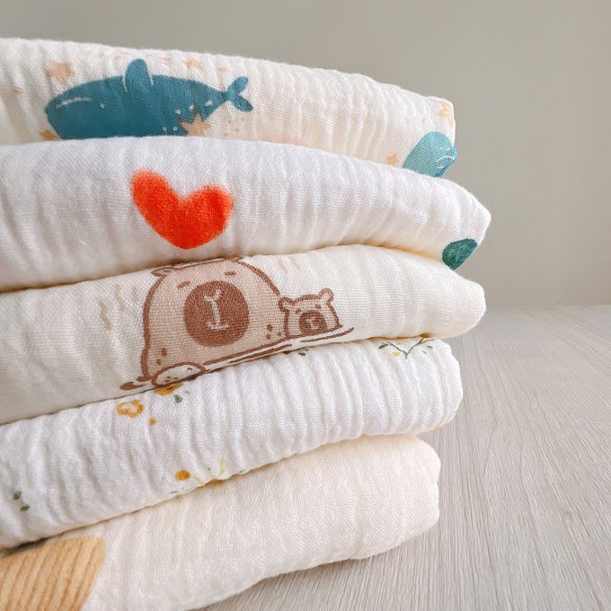 -新生兒親膚衣物(嬰幼兒包巾與背巾、包屁衣、學習褲、紗布衣等)。