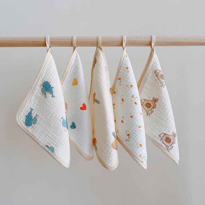 四層紗萬用紗布方巾5件組 (F碼25X25CM)