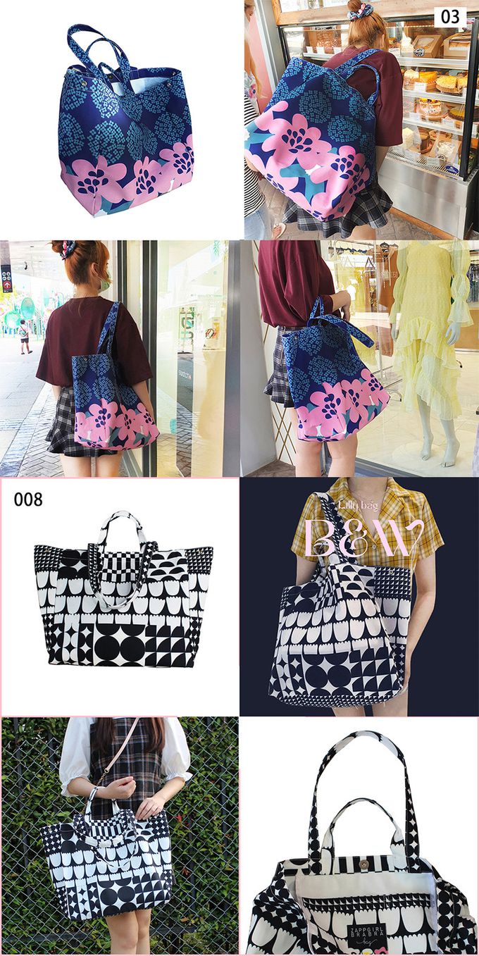 成分:泰國潮流設計師包款~ 在地的手工包,設計的圖案印花和縫紉設計是品牌堅持的獨特。 這咖容量很大,可以裝很多東西,多款花布設計,超喜歡他們家的設計好美,每一款都想收集! 可以肩背,手提,內容量超大可以裝超多東西,內袋還有兩隔層,東西收納很方便! 側邊有隱藏式扣子設計,包包可隨意變換大小,這款包特別的設計就是可以從廣口型變成方型包! 隨著心情與穿搭變成不同風格造型~~ 面料不會粗糙,皮膚也完全不會扎扎的,CP值真的很高! 連筆記型電腦,ipad,A4文件都可以放得下唷~ 學生、上班族、旅行、海邊沙灘、購物袋、當媽媽包都很適合喔!! **包包不含拍照的配件與吊飾喔!! ① 使用中性洗衣精清洗,可手洗或機洗 ② 耐高溫,但不易起皺所以也不太需要熨燙 尺寸: 包包寬50x高35x厚18cm 手提背帶高度:11cm 肩背背帶高度: 25cm (包包不含玩偶吊飾)