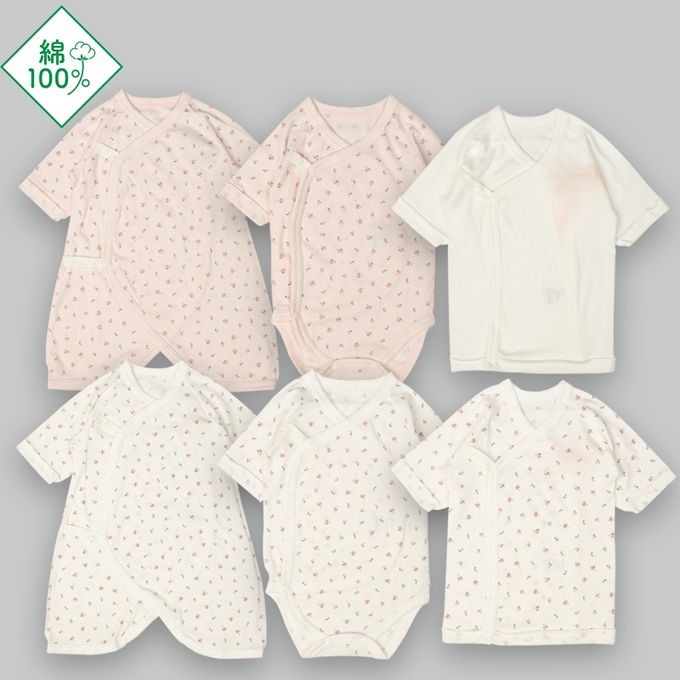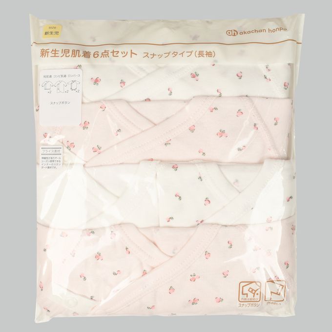akachan honpo - 新生兒內衣6件組-粉紅色 (肚衣:50cm蝴蝶裝:50~60cm)