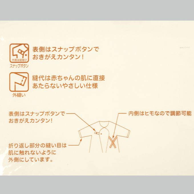 肚衣不僅具有保溫功能,還能吸收頸部和腋下汗水,保持身體清爽。蝴蝶衣和肚衣搭配,内側使用按扣,即使小寶寶活動雙腳,下擺也不容易位移。