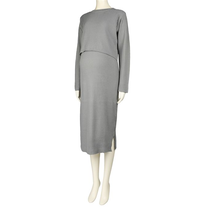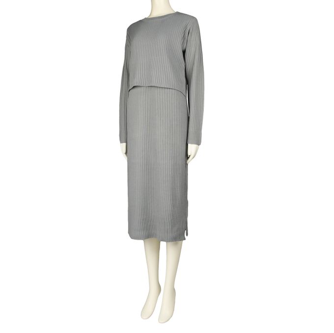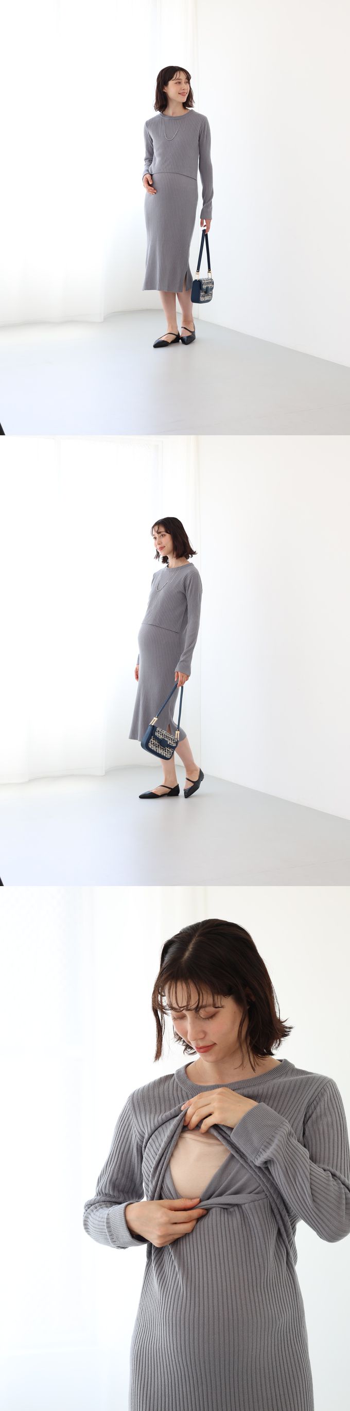 長袖羅紋針織洋裝-可水洗-淺藍色
