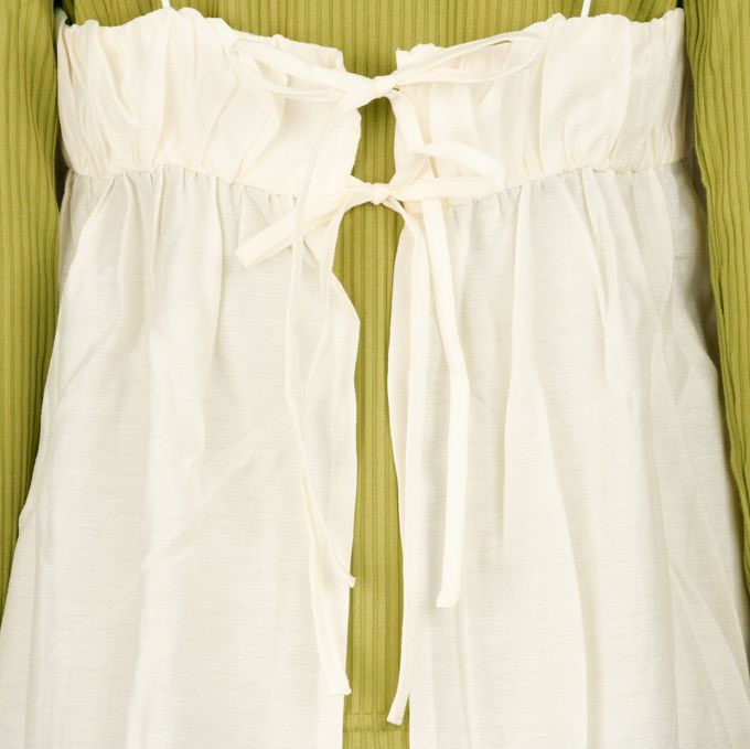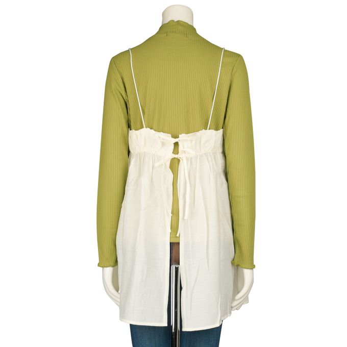 長版上衣的後面有兩個位置可以用繩子綁成蝴蝶結。