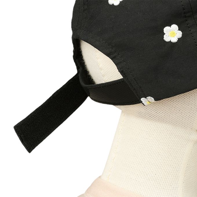 附有下巴鬆緊帶,防止帽子因風吹等原因而掉落。