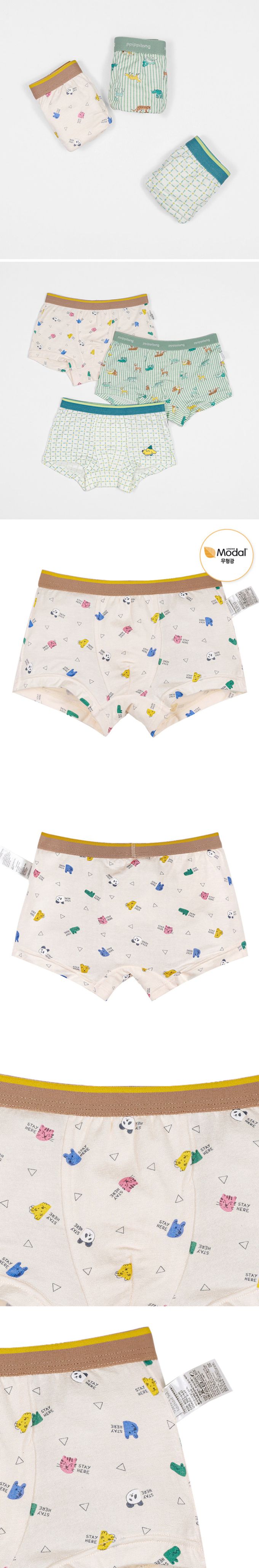 韓國 Ppippilong - 莫代爾親膚絲滑四角褲(男寶)-手繪萌萌動物-米膚