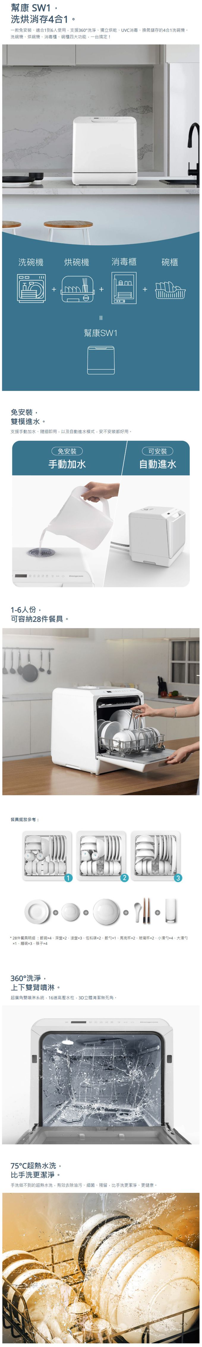 型號:SW1額定功率/頻率:110V / 60Hz額定消耗功率:900W容量:4-6人(28件餐具)水箱容量:5L防水等級:IPX1尺寸:428x425x458 mm重量:13Kg配件:碗架、上擱架、量杯、水果籃、水箱蓋、進水管、排水管、排水管夾、吸盤、說明書(含保證書)保固:一年保固,配件保固3個月產地:中國