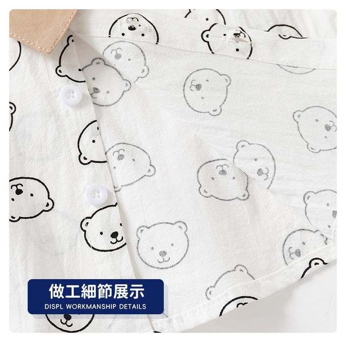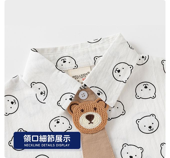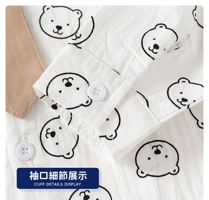 純棉休閒長袖襯衫-熊熊領帶-滿版印花