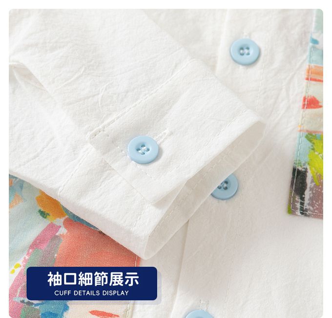 圖案鮮豔+撞色鈕扣,讓寶貝可愛再加分