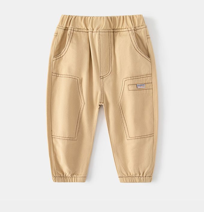 WELLKIDS - 腰鬆緊束口休閒長褲-刺繡小熊-卡其