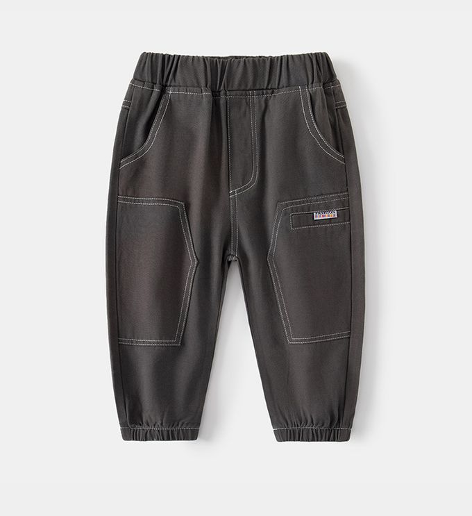 WELLKIDS - 腰鬆緊束口休閒長褲-幾何拼接-深灰