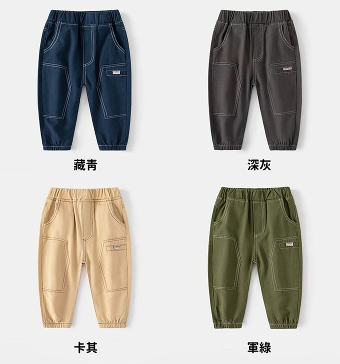 WELLKIDS - 腰鬆緊束口休閒長褲-幾何拼接-軍綠