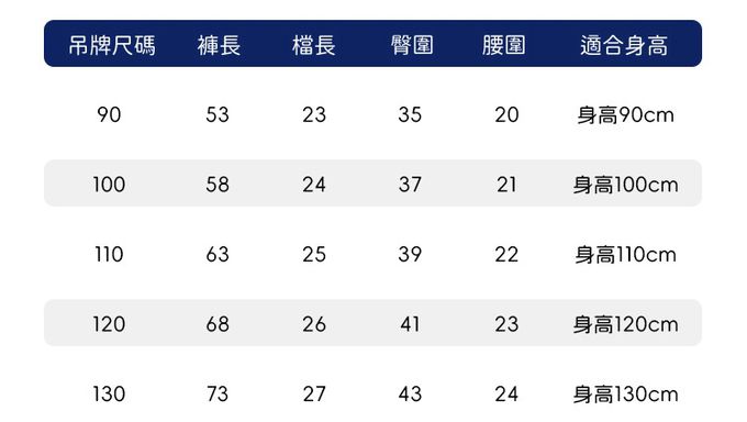 90cm、100cm、110cm、120cm、130cm