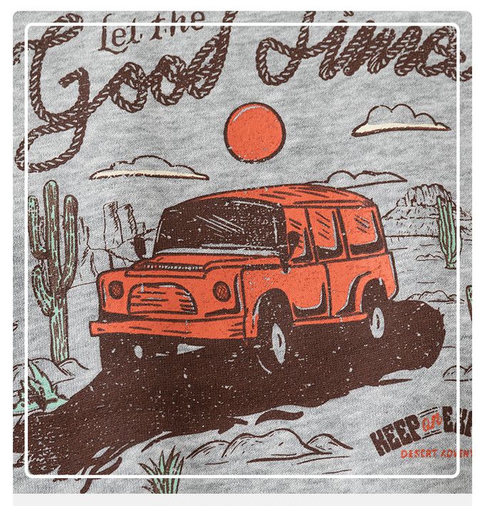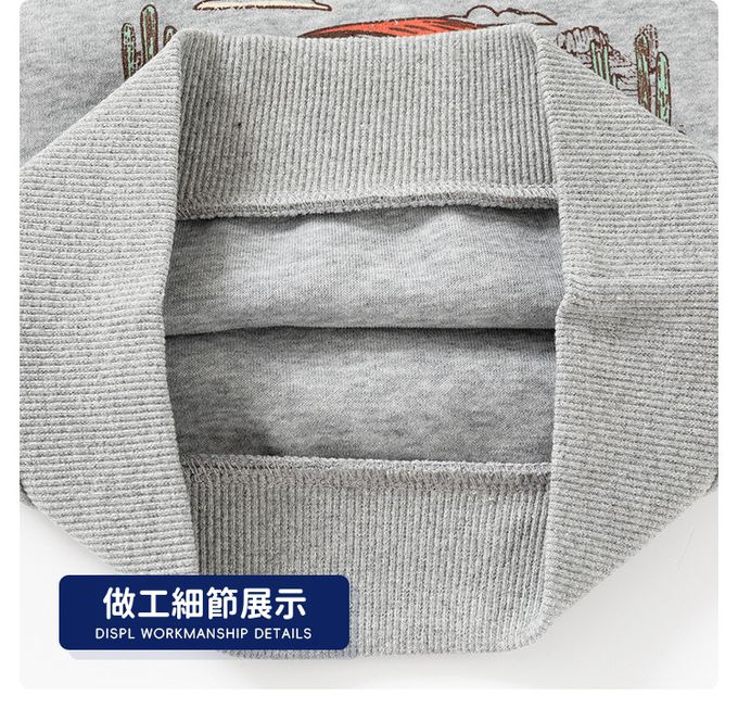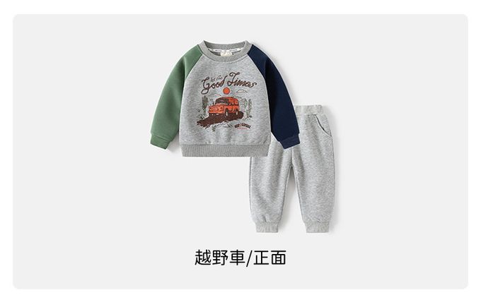 WELLKIDS - 圓領寬鬆運動服套裝-恐龍散步-杏+灰