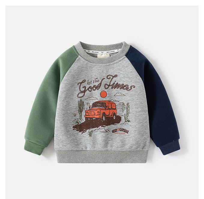 WELLKIDS - 圓領寬鬆運動服套裝-恐龍散步-藍+灰
