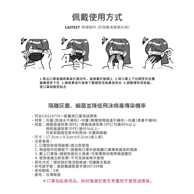 醫療器材許可證品名:萊潔醫療防護口罩(未滅菌)