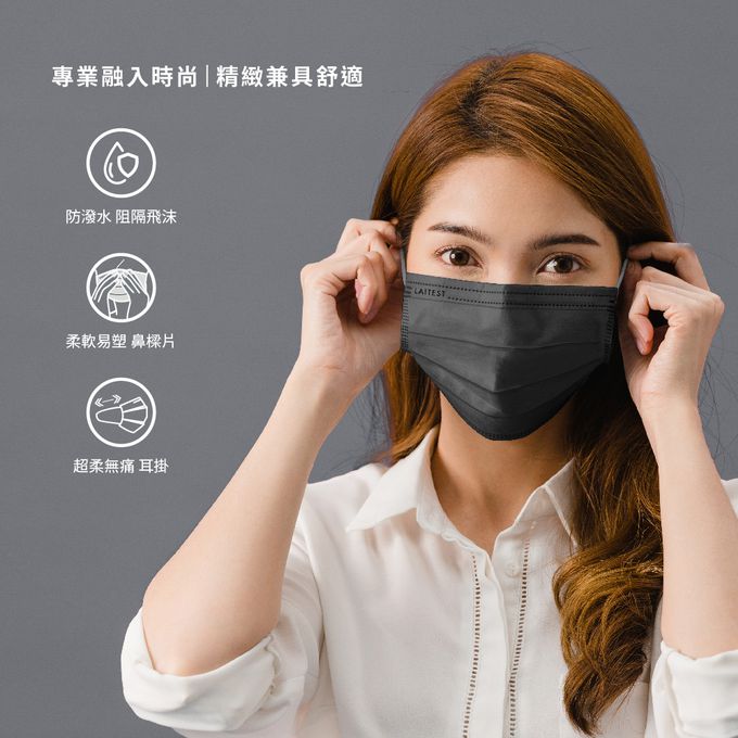 醫療防護口罩/成人 夜蝕灰 30入盒裝(都會時尚系列)