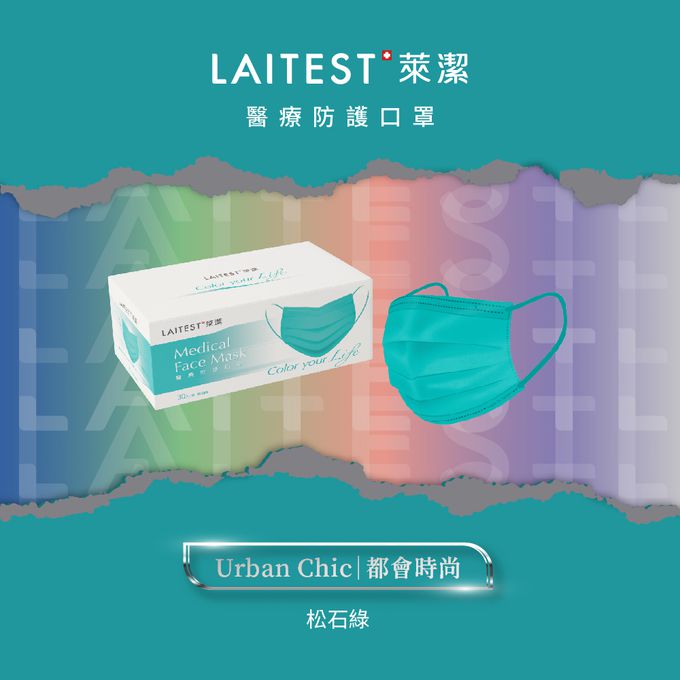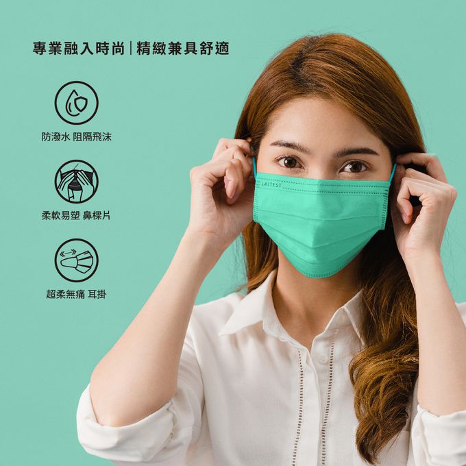品名:醫療防護口罩/成人 松石綠 30入盒裝(都會時尚系列)