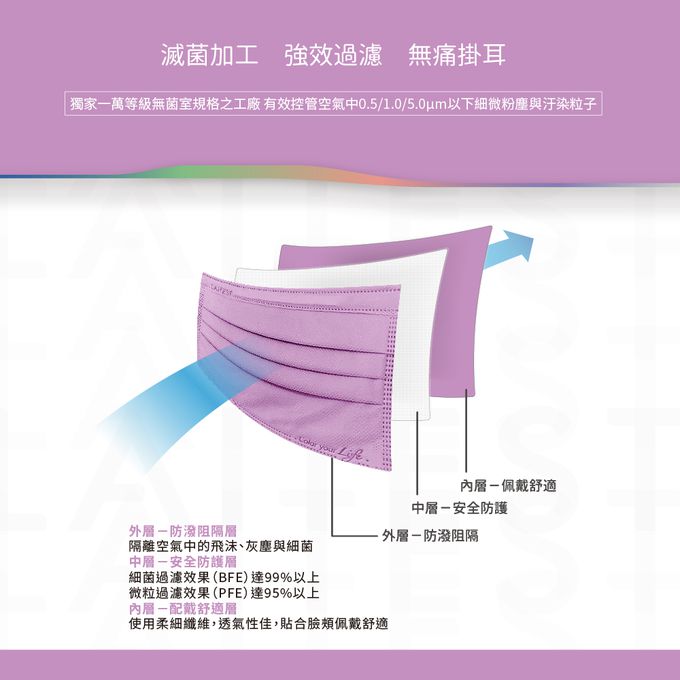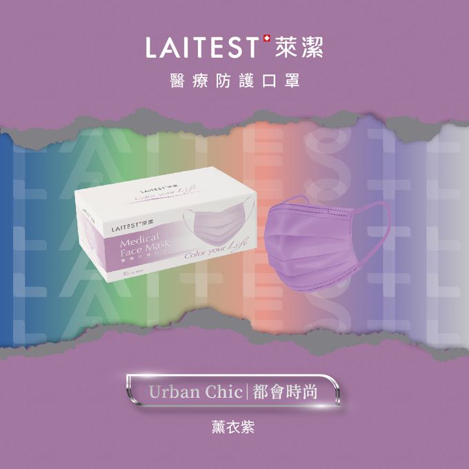 品名:醫療防護口罩/成人 薰衣紫 30入盒裝(都會時尚系列)
