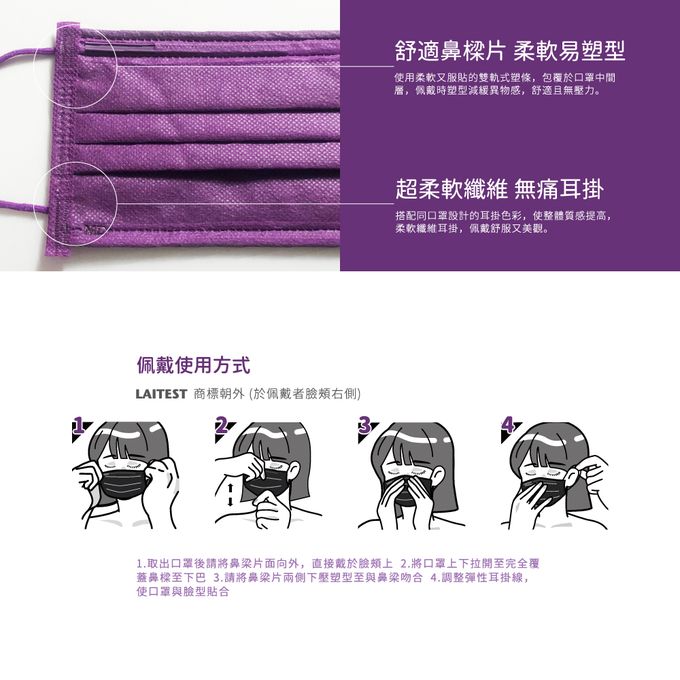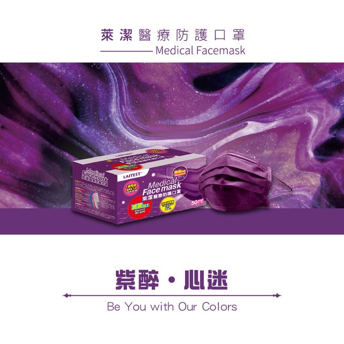 品名:醫療防護口罩/成人 夜霓紫 50入盒裝(炫彩系列)