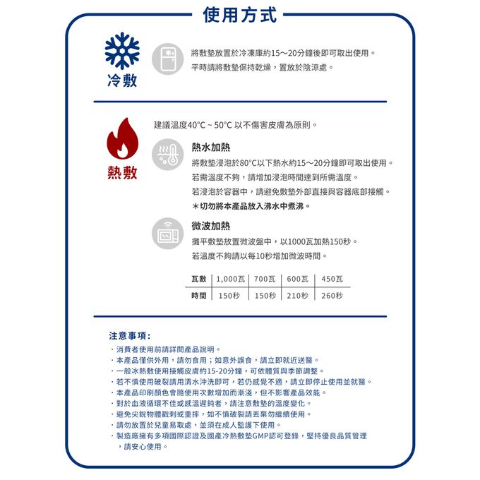 醫療器材許可證品名:瑞斯冷熱敷墊(未滅菌)