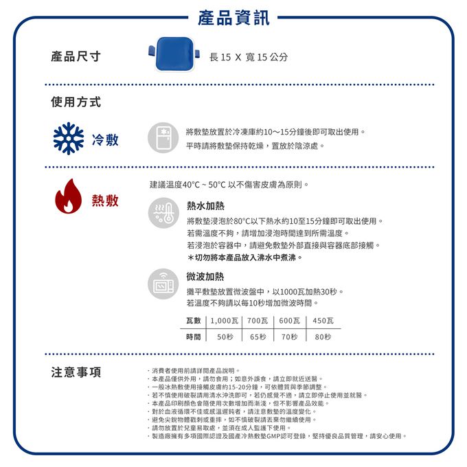 醫療器材許可證品名:瑞斯冷熱敷墊(未滅菌)