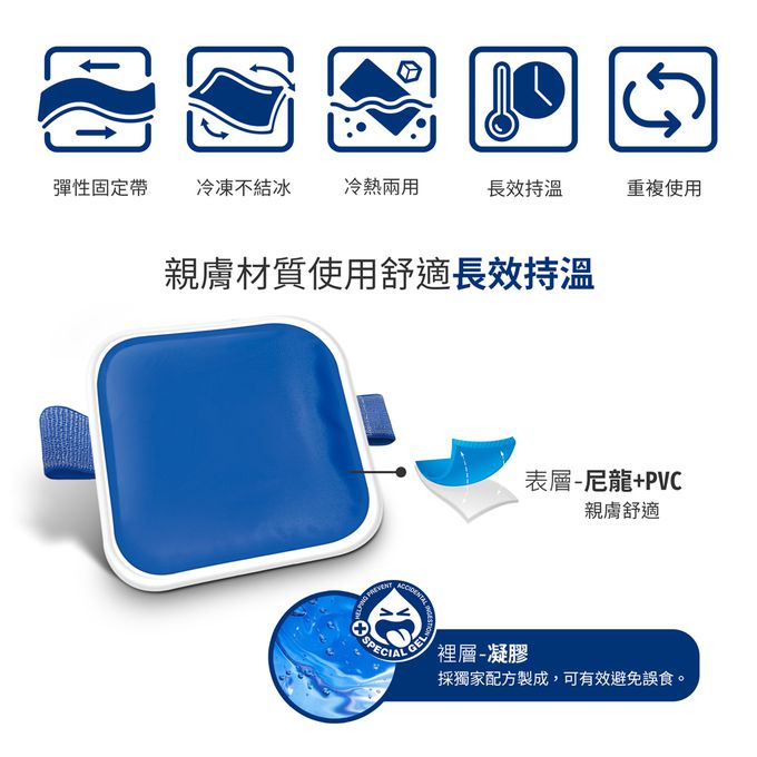獨特新設計,冷凍後持柔軟,隨身體部位彎曲