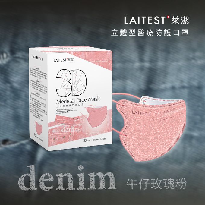 品名:3D立體型醫療防護口罩(成人用)牛仔玫瑰粉 30入盒裝