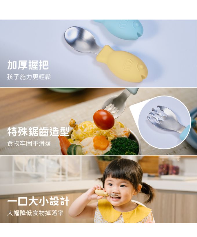 【海洋歷險趣】不鏽鋼兒童矽膠學習餐具組