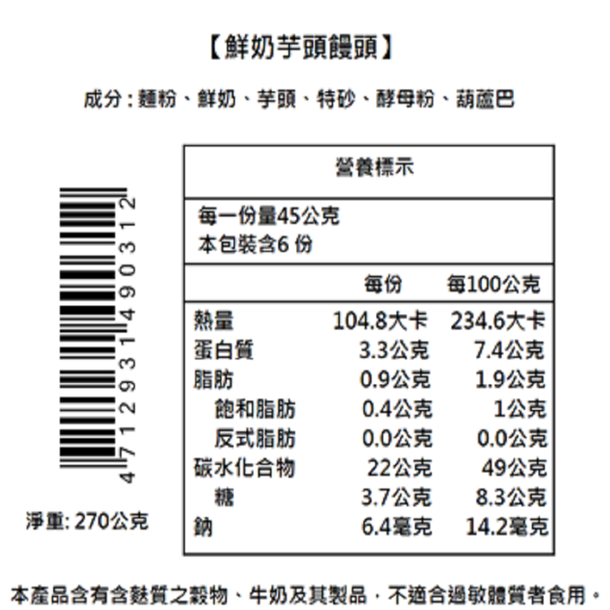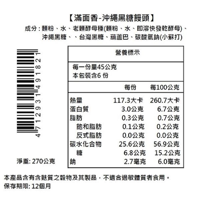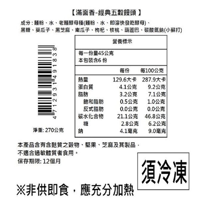 過敏原:本產品含有含麩質之穀物、芝麻、堅果、牛奶及其製品、不適合過敏體質者食用。