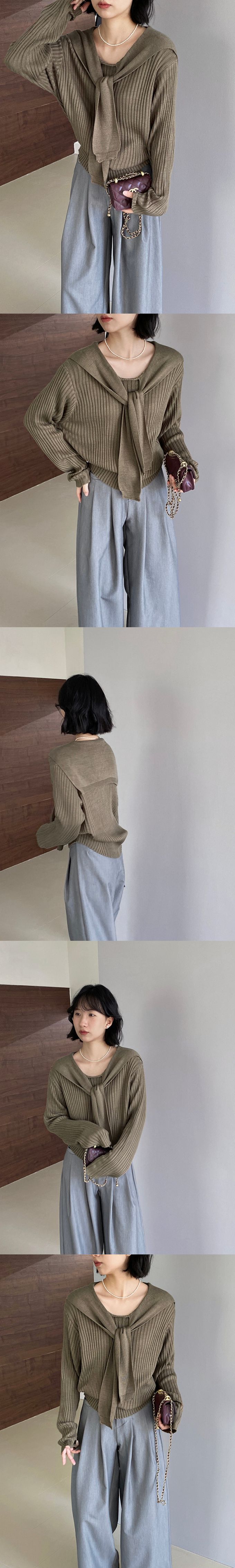 假兩件海軍領長袖針織上衣-可可咖 (F)