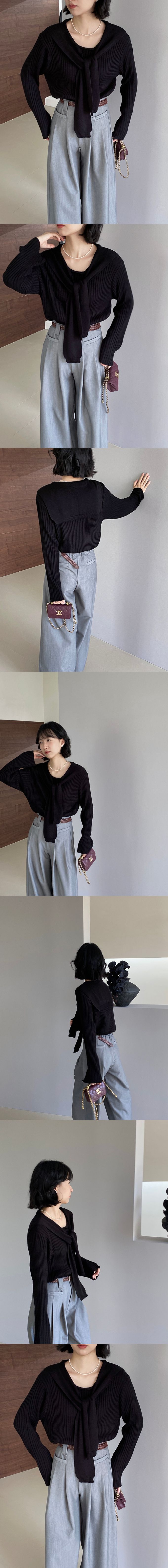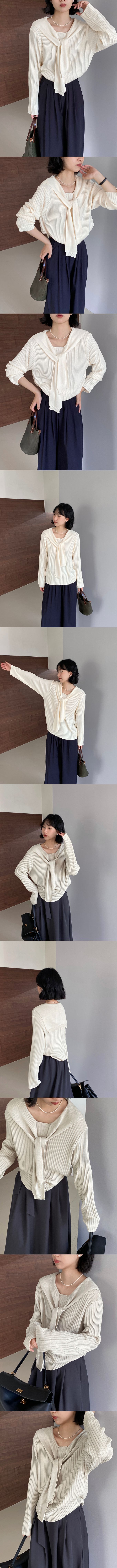 品名:假兩件海軍領長袖針織上衣