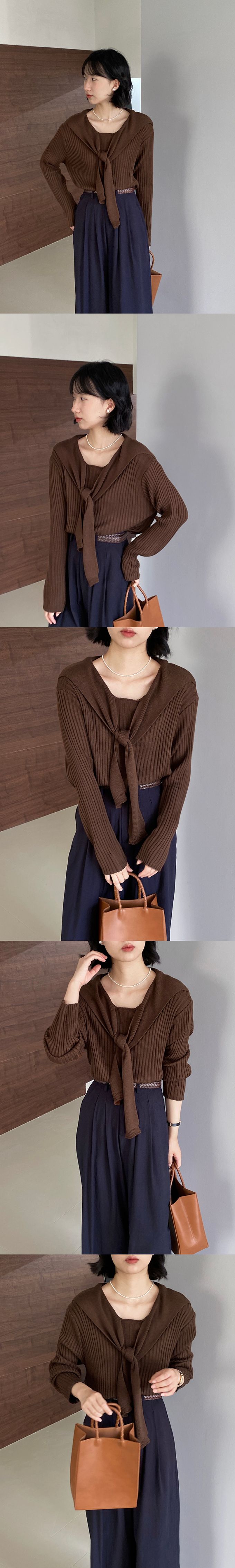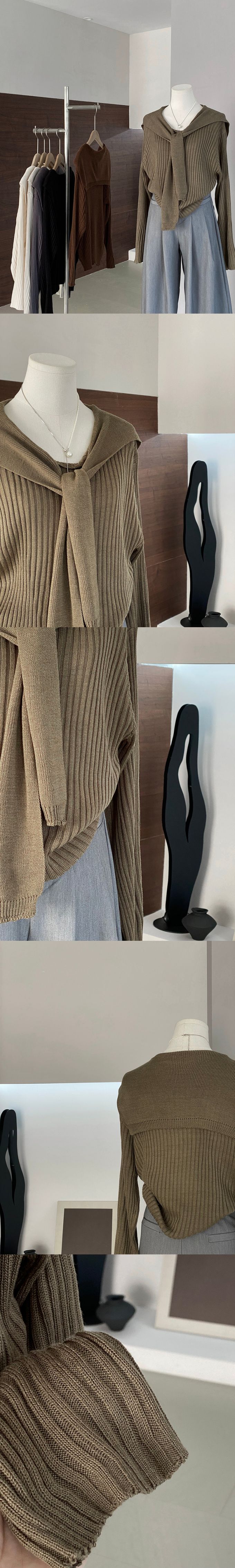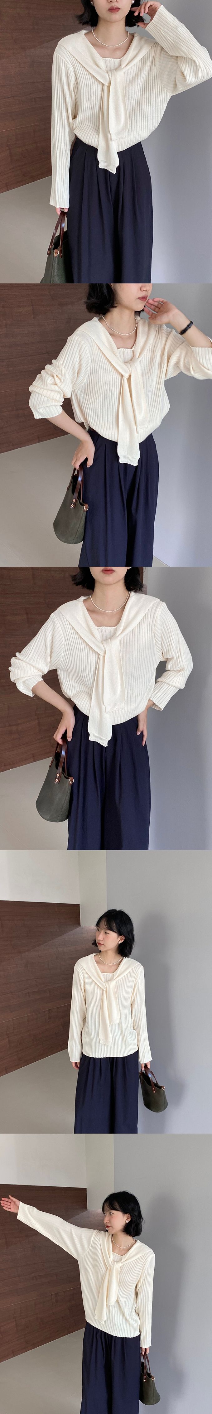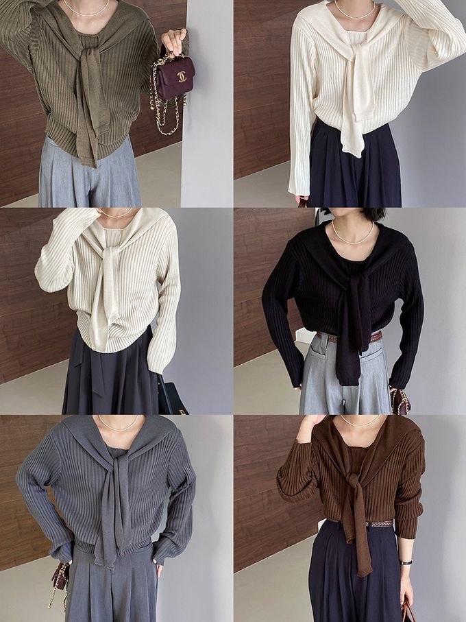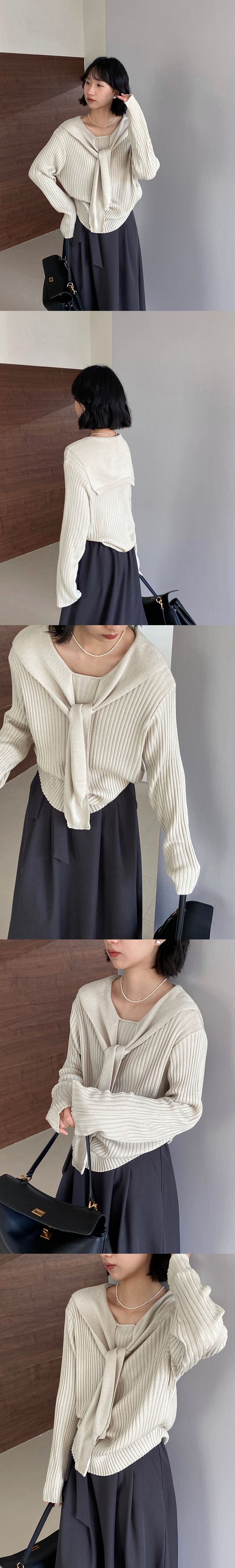 假兩件海軍領長袖針織上衣-杏色 (F)