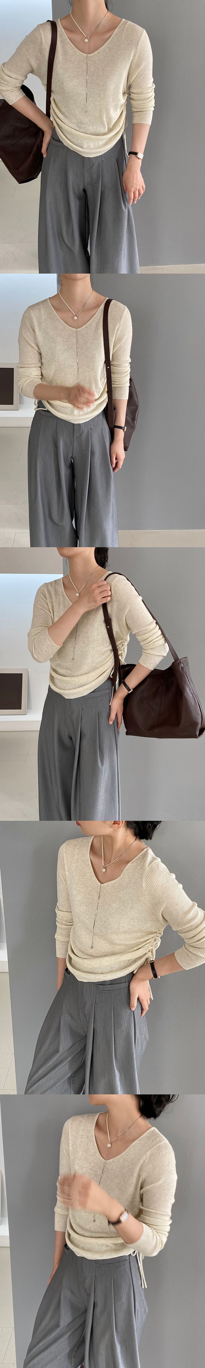 品名:抽繩設計顯瘦百搭長袖羊毛針織上衣