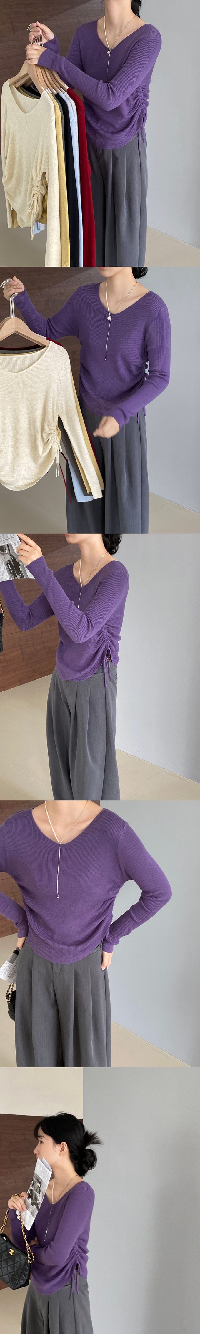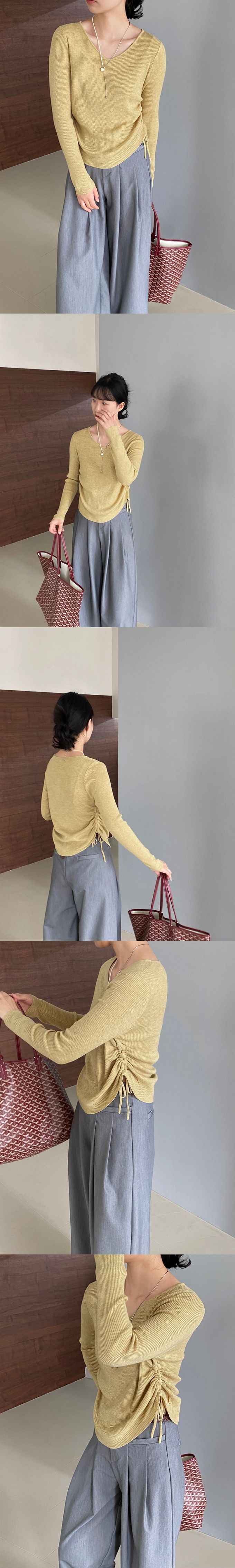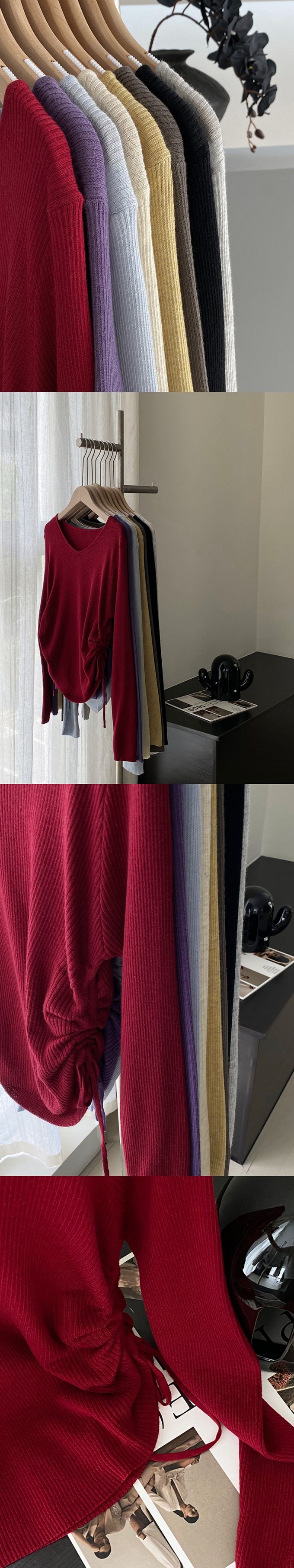 品名:抽繩設計顯瘦百搭長袖羊毛針織上衣