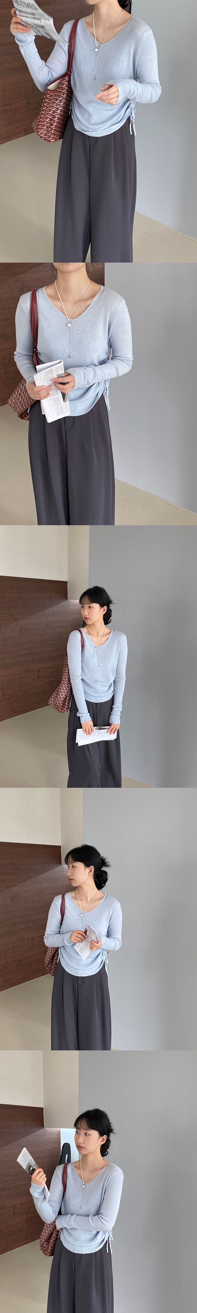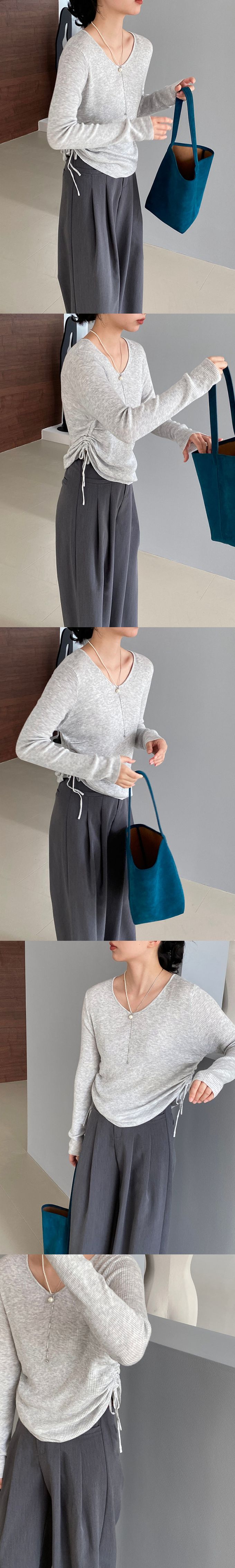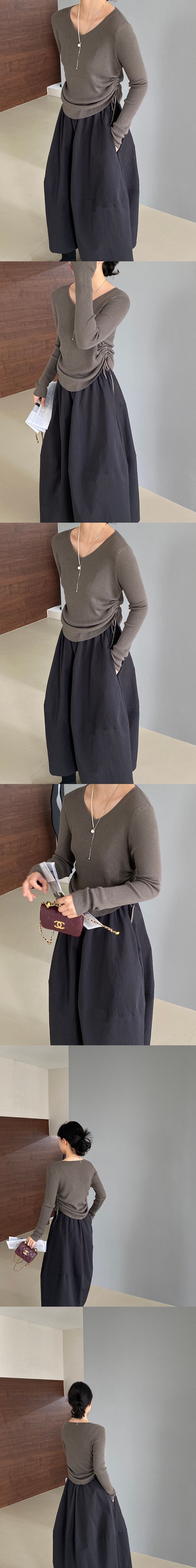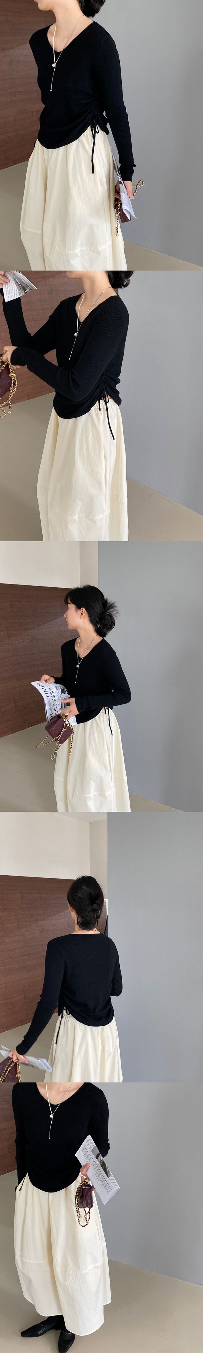 品名:抽繩設計顯瘦百搭長袖羊毛針織上衣