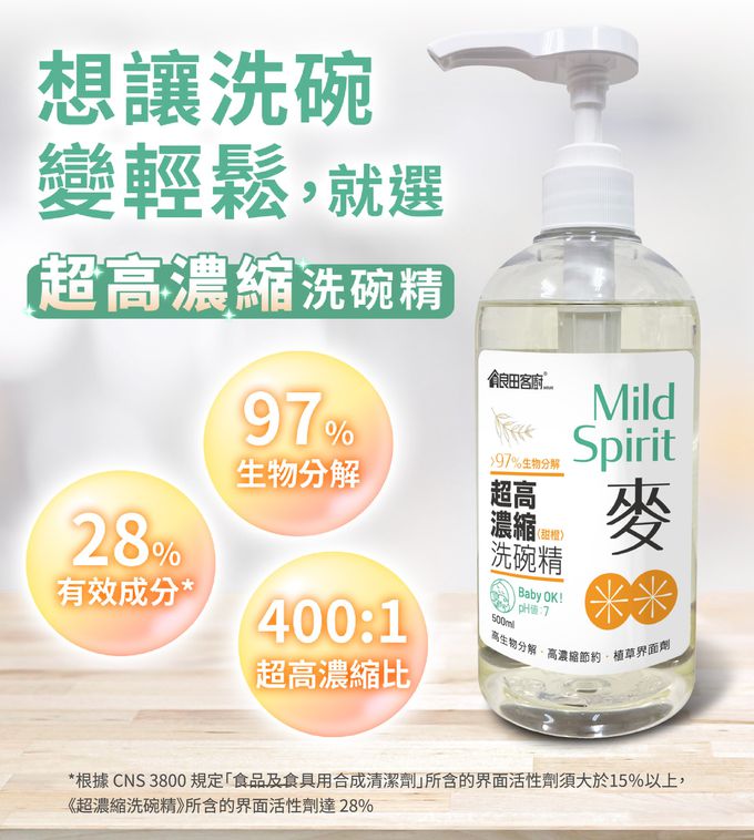 成分:超高濃縮洗碗精成分: 水、有機酸、植物來源界面活性劑、檸檬酸、橘油