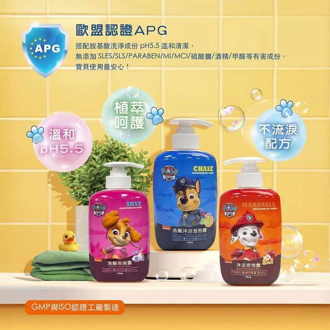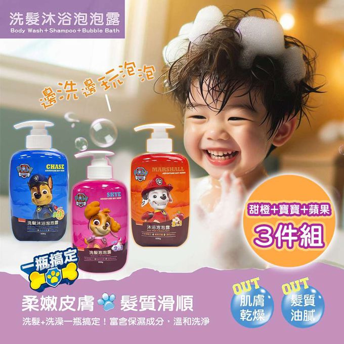 汪汪隊兒童洗髮沐浴泡泡露 500g三件組 台灣製造 洗澡一瓶搞定 (甜橙香氛+寶寶香+蘋果香氛)-摩達客推薦-500g