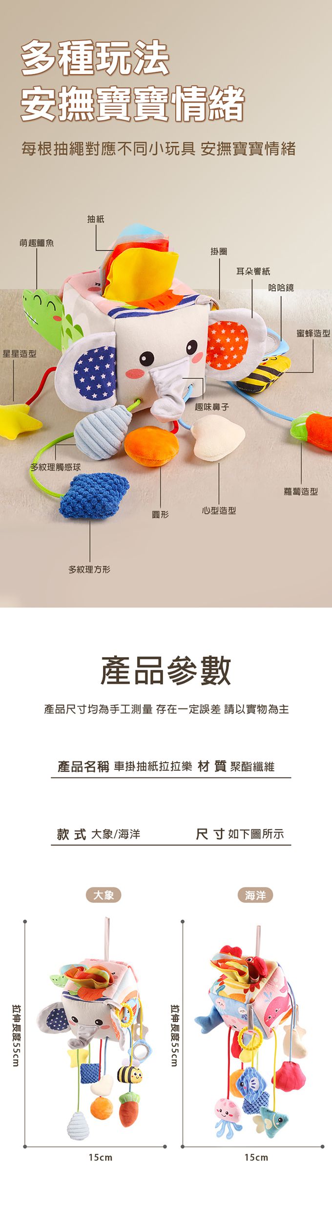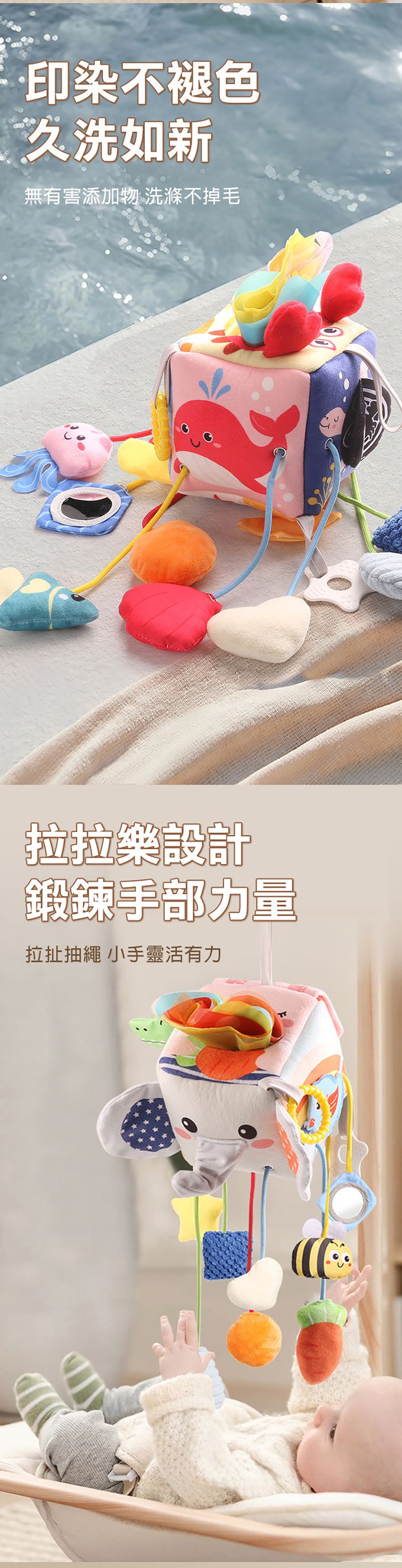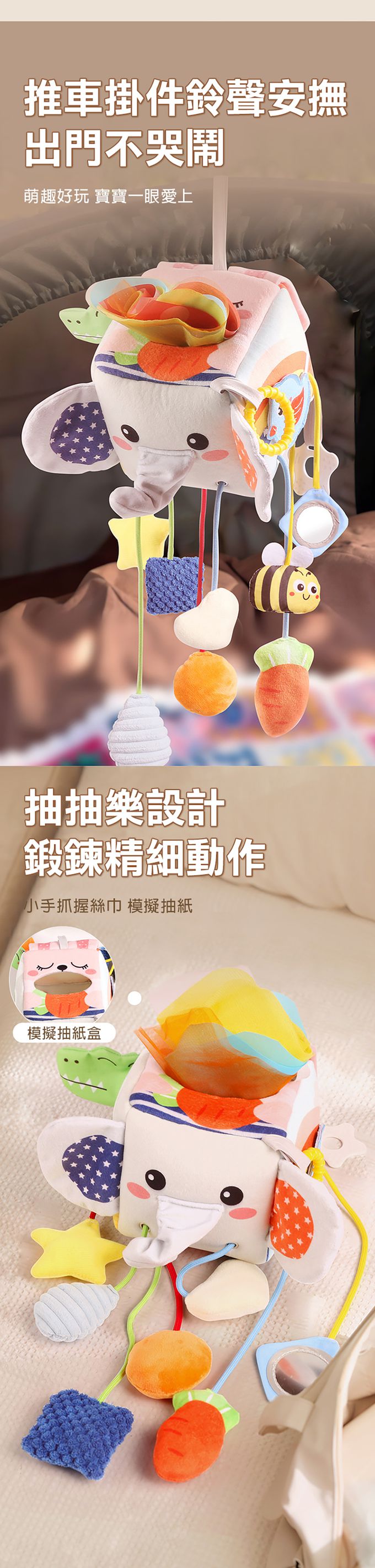 1.幫助安撫寶寶情緒,每條抽繩對應不同小玩具。