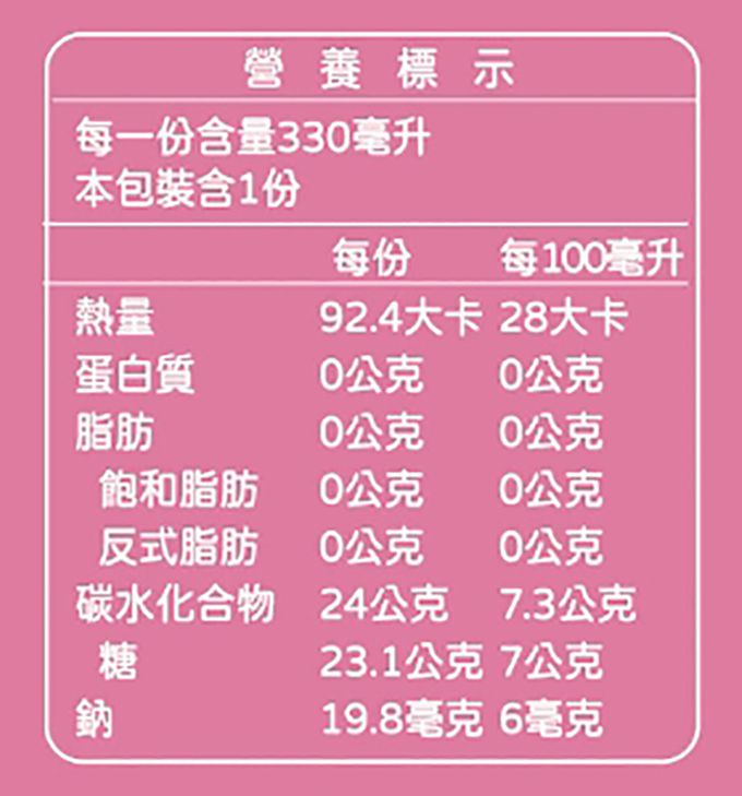 成分:碳酸水、果糖、砂糖、香料、檸檬酸、檸檬酸納