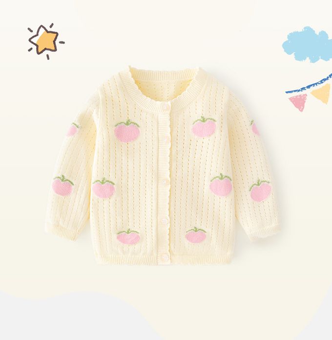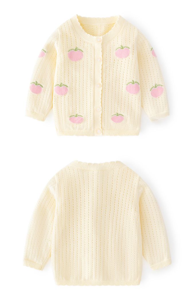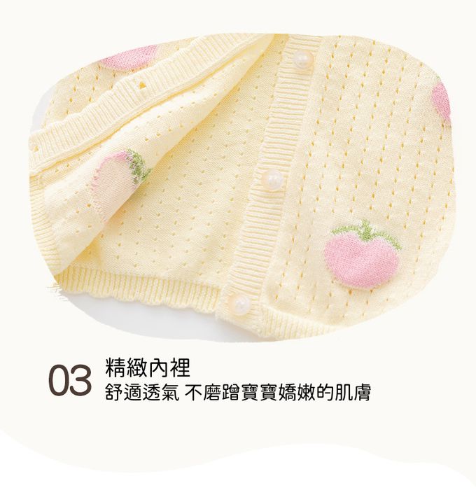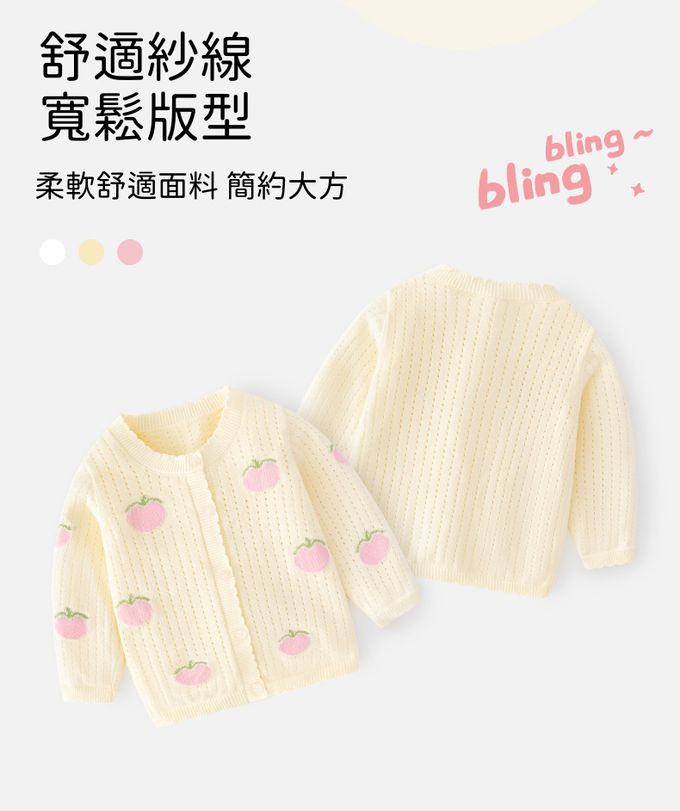 純棉圓領針織排釦外套-粉蘋果-米杏色