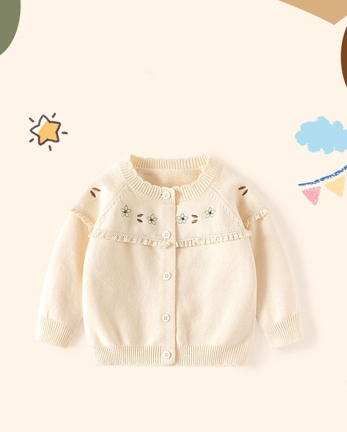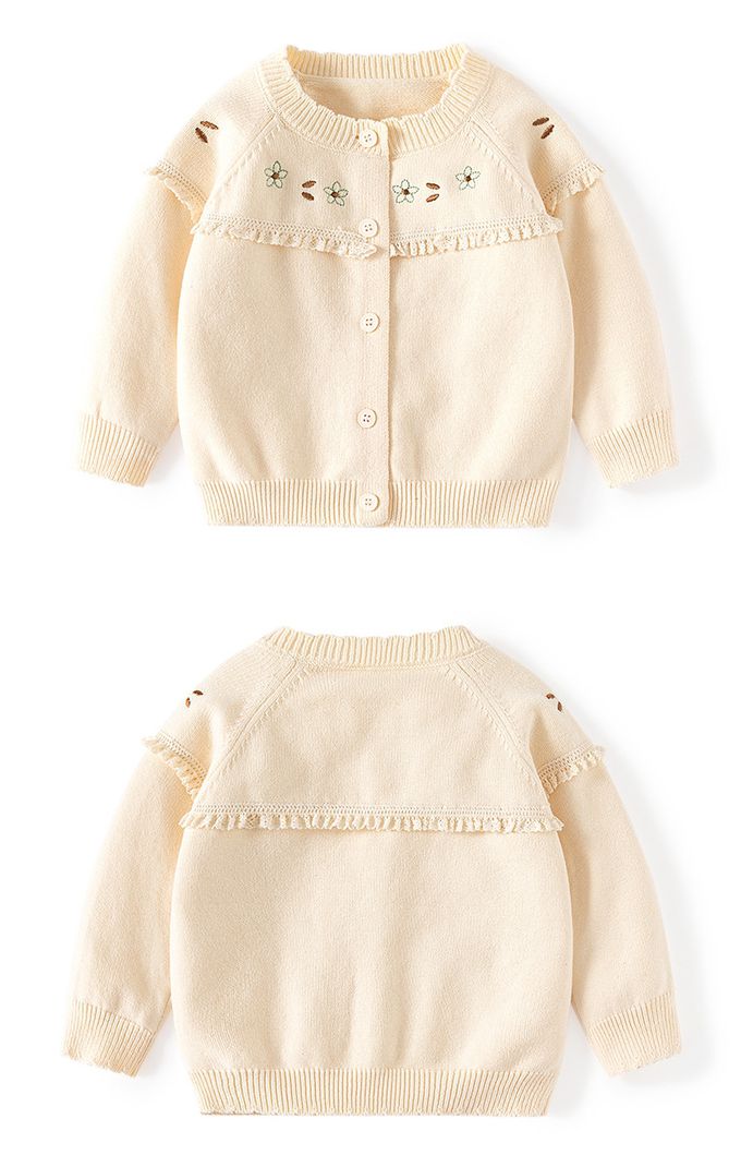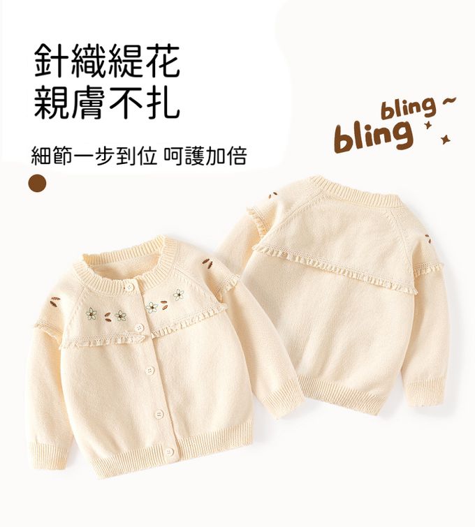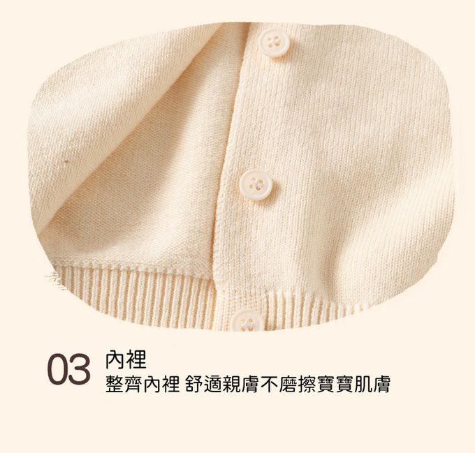 BABUYU - 舒適圓領針織排釦外套-麻花小刺繡-米杏色