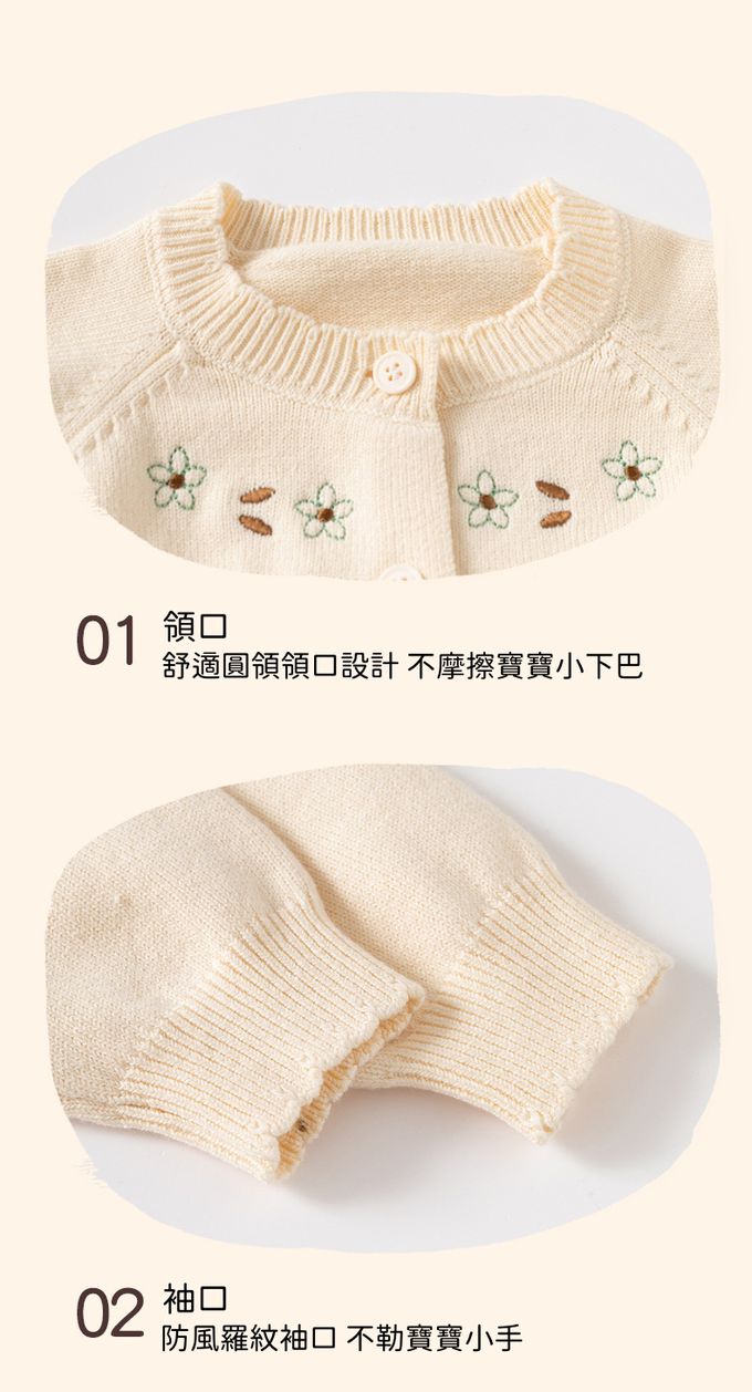 舒適圓領針織排釦外套-復古小花朵-米杏色