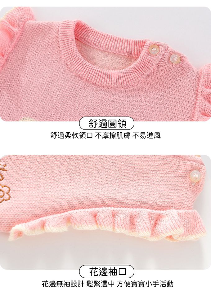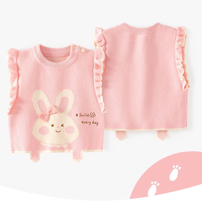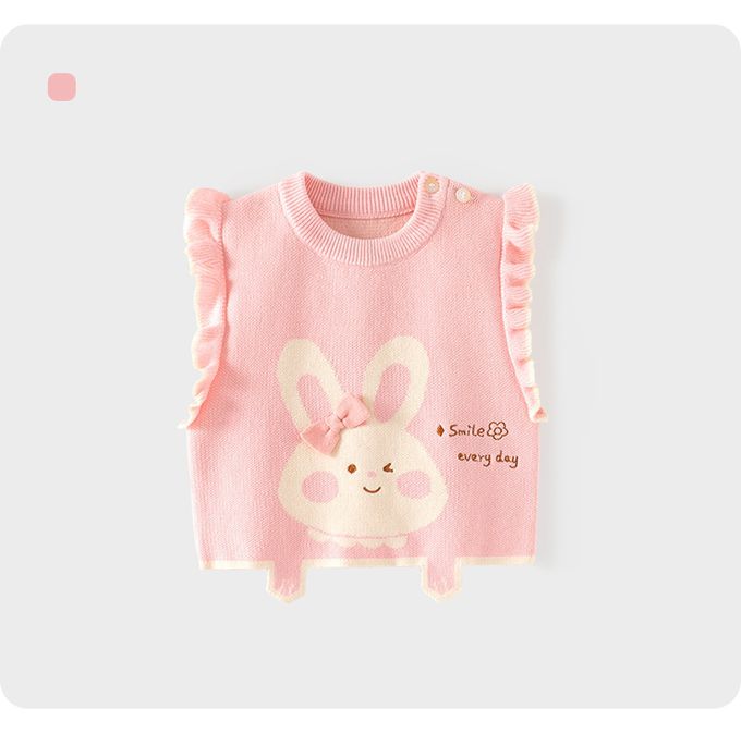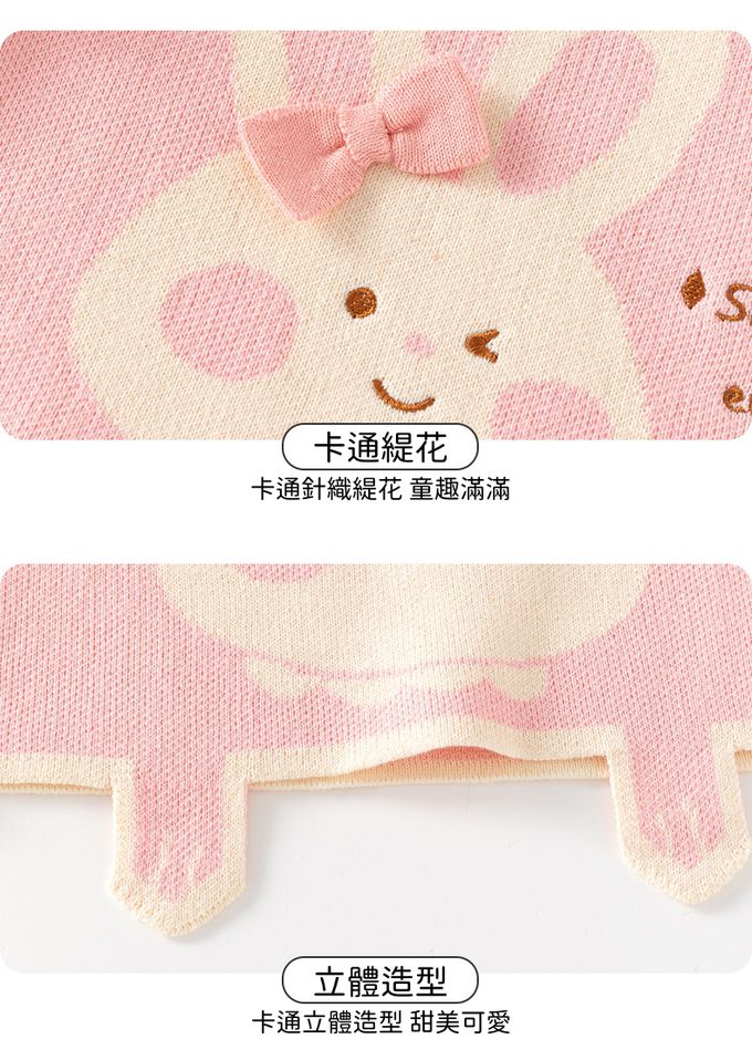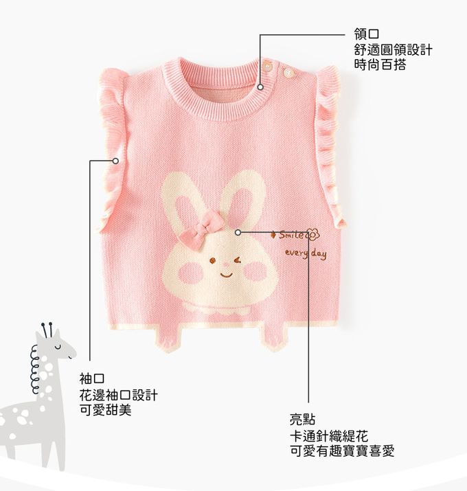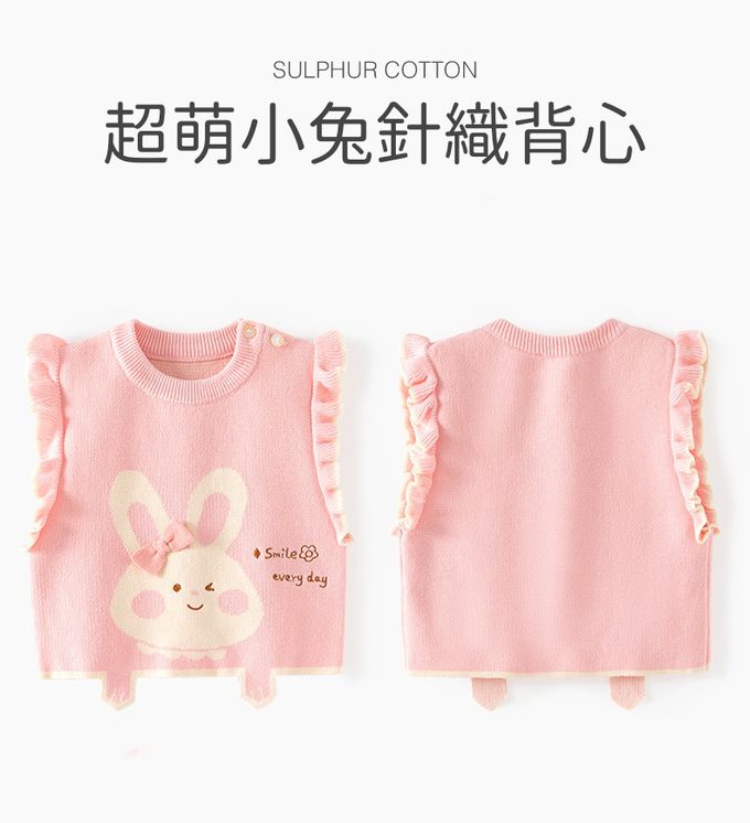 純棉圓領荷葉邊針織背心-超萌小兔-粉色