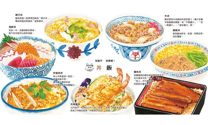米飯、飲食、多元文化、日本文化、手繪、壽司、炊飯、丼飯、咖哩飯、圖鑑